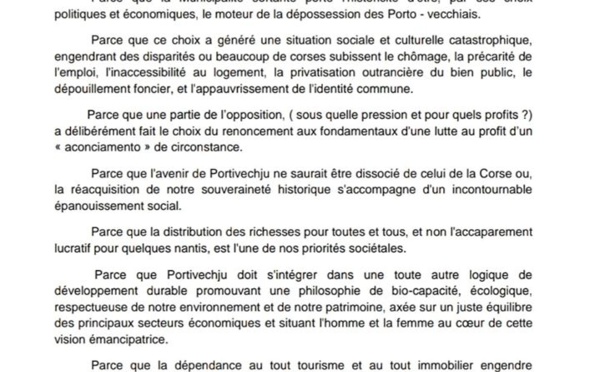 Dans un post publié sur sa page Facebook, Core in Fronte Porti Vechju exhorte ses militants et sympathisants à soutenir massivement la démarche de Don-Mathieu Santini, tête de liste de "Porti Vechju da fà".