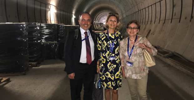 Nanette Maupertuis, entourée de ses collégues italien et français, visitant le chantier du métro de Sofia financé par l'Europe.