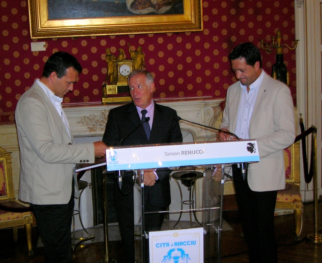 Les auteurs Martial et Nicolas Mutte ont été reçus par le maire d'Ajaccio. (Photo : Yannis-Christophe Garcia)