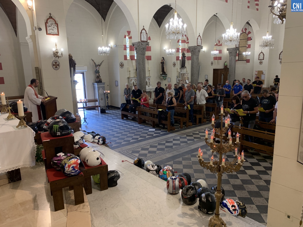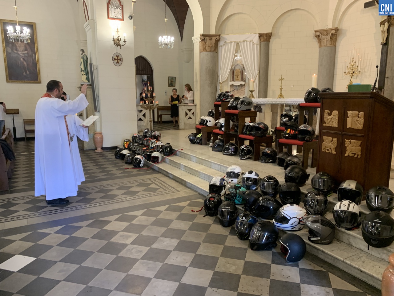 «Je suis très heureux de vous accueillir dans cette paroisse, moi-même qui suis motard, très heureux de partager ce temps de prière, cette espérance» déclarait le Père Nicoli en préambule de la cérémonie. «Quand on se prépare au permis moto, on nous place face à la réalité, face au danger de la vie. Dès lors ceux qui nous entourent, ceux qui nous aiment ont peur pour nous. Cela nous rappelle qu’on est aimé et c’est ce qui est important. Quand nous partons seul sur notre machine, il faut se souvenir de ces gens qui nous aiment. Chacune de nos vies est sacrée et on ne peut pas faire n’importe quoi. En cette époque peu joyeuse, nous chrétiens, on doit puiser dans notre foi. Je vais bénir vos casques, vous bénir sur vos machines mais la main de Dieu n’est pas magique. Il ne faut pas se dire que désormais rien ne pourra nous arriver ».