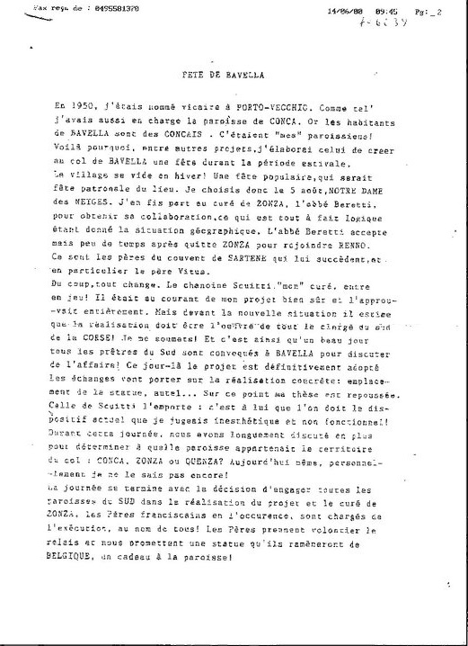 La vierge blanche de l'Alta Rocca, fut réceptionnée le 5 août 1953 et placée sur son socle où elle fut bénie. Le tout fut suivi d'une messe et d'un grand repas champêtre.