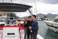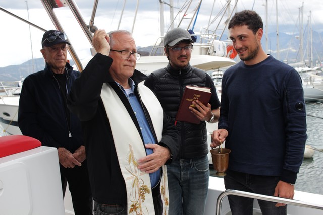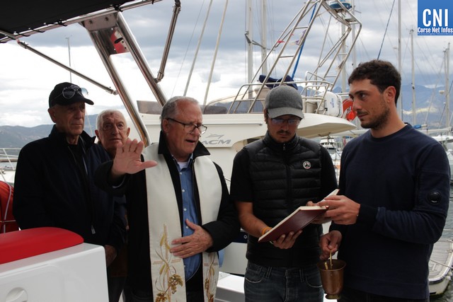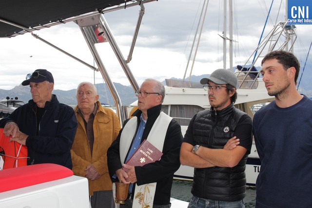 C'est donc l'abbé Ange-Michel Valery, archiprêtre de Calvi-Balagne qui montait à bord de l'imposante vedette rapide Santa Regina pour inviter la foule à la prière, avant la traditionnelle bénédiction. A ses côtés Florent Rocca Serra, capitaine du bateau, qui a passé ses qualifications pour pouvoir naviguer aux commandes d'une telle unité, les deux parrains Sébastien Rocca Serra et Fanfan Danielli.