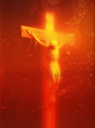 Cette photographie de 59,7 cm de hauteur par 40,6 cm de largeur, représente un crucifix de couleur claire, plongé dans des tonalités rouges sombres et mordorées qui selon l’artiste serait celles de son urine et de son sang.