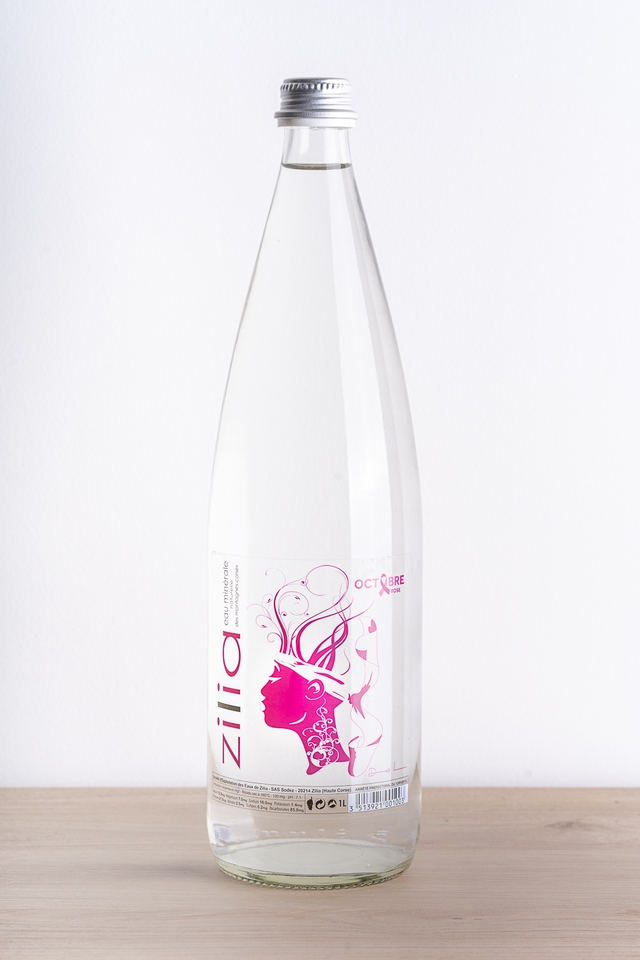 Une bouteille d'eau munérale de Zilia aux couleurs d'Octobre Rose Photo Eyefinity Prod/Kevin Guizol