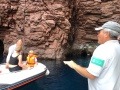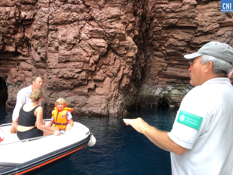 Dans une des grottes, lieu très fréquenté, c'est un bateau, avec a son bord des familles. Cette fois-ci, c'est Jean-Marie Dominici, reponsable du PNRC qui intervient. À l'intérieur de la cavité, armé de son sifflet, un des enfants s'amusait à faire résonner le petit instrument du gilet de sauvetage. Une nuisance sonore qui dérange la biodiversité.