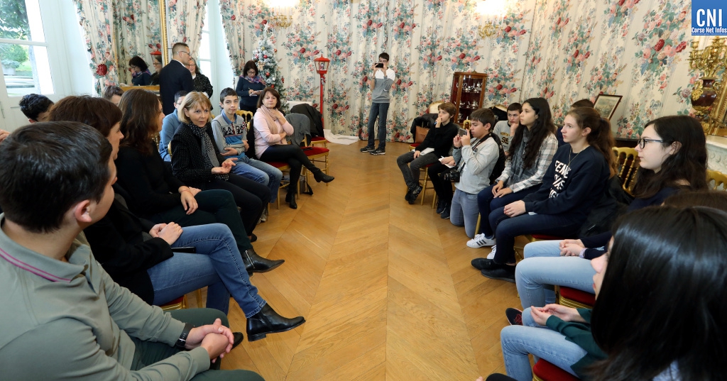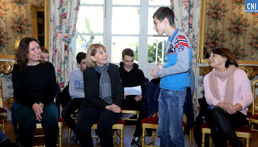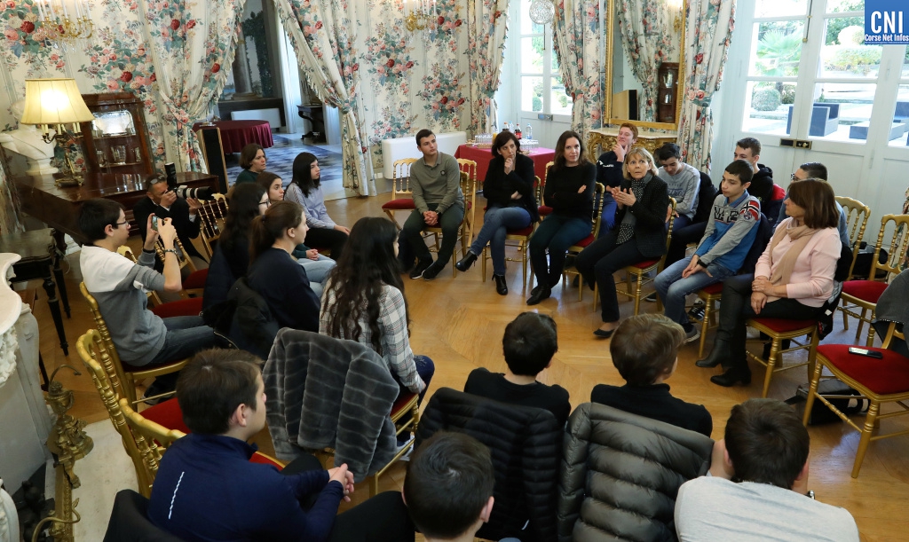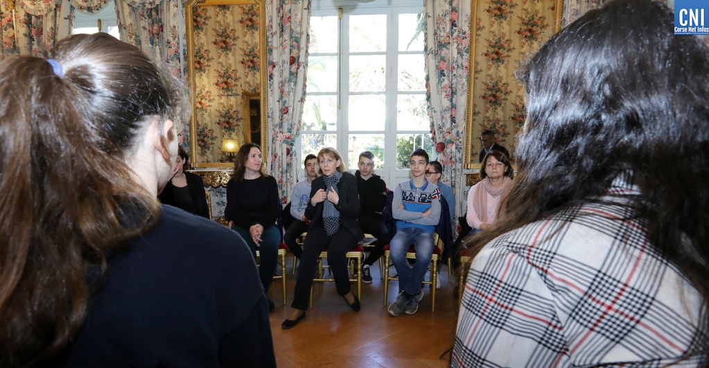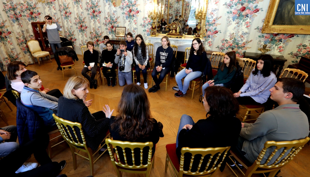 Rencontre dans les salons de la préfecture d'Ajacio entre les élèves du collége des Padule et la préfète de Corse Josiane Chevalier (Photo Michel Luccioni)