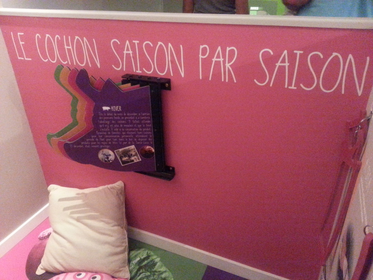 -l’espace pédagogique qui présentera l’animal de ses origines à l’alimentation en passant par les diverses races existantes (large white, Duroc, Porcu Nustrale), les techniques d’élevage et l’alimentation.