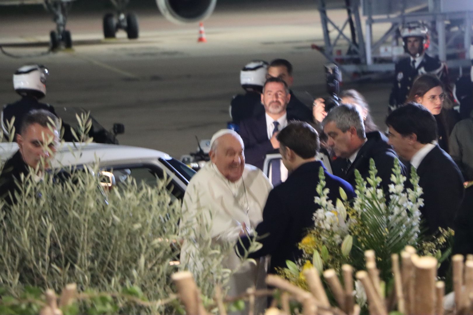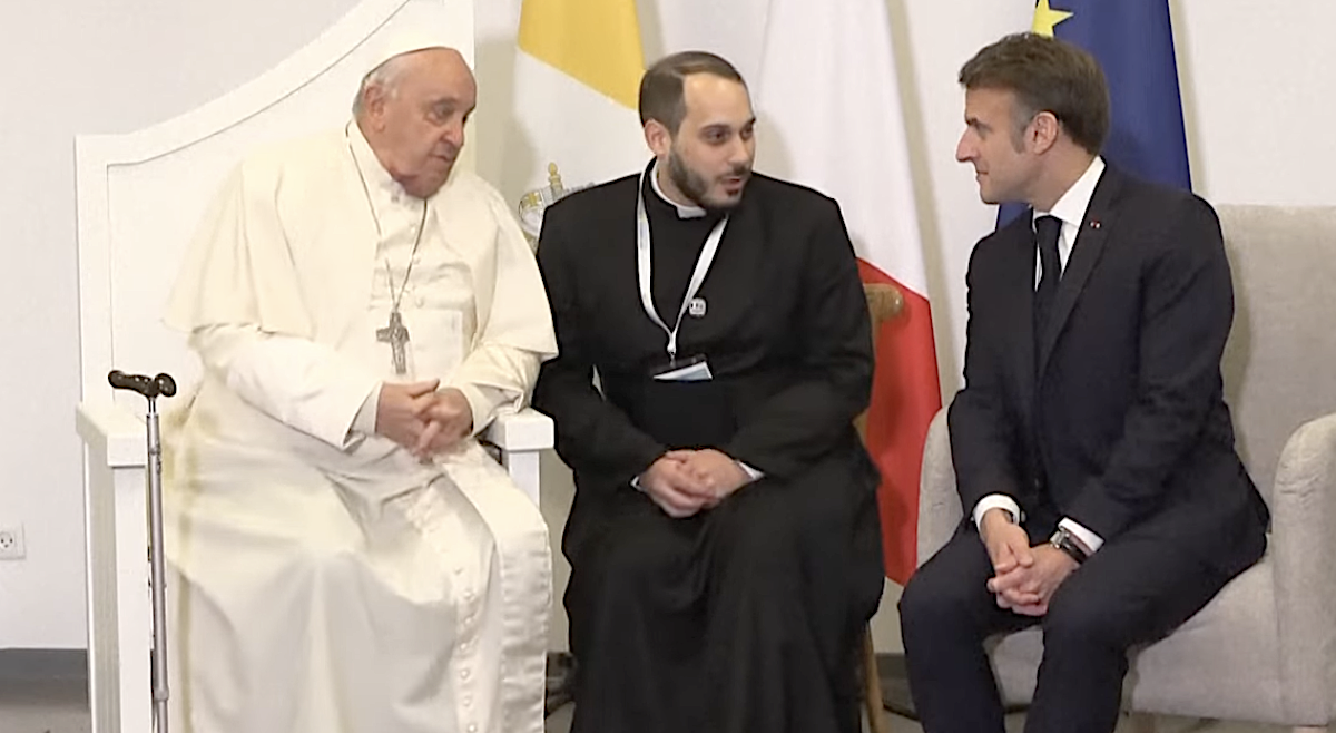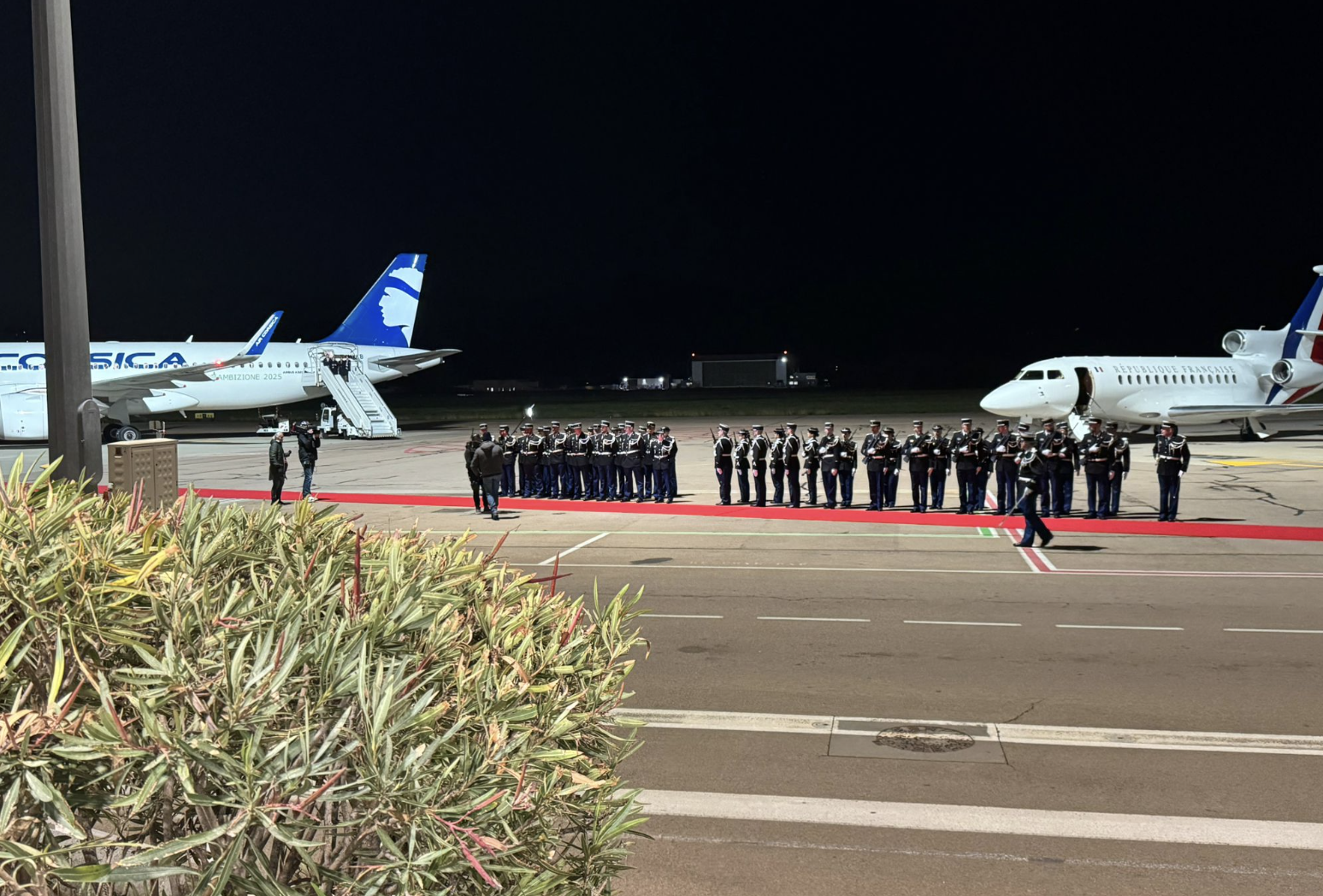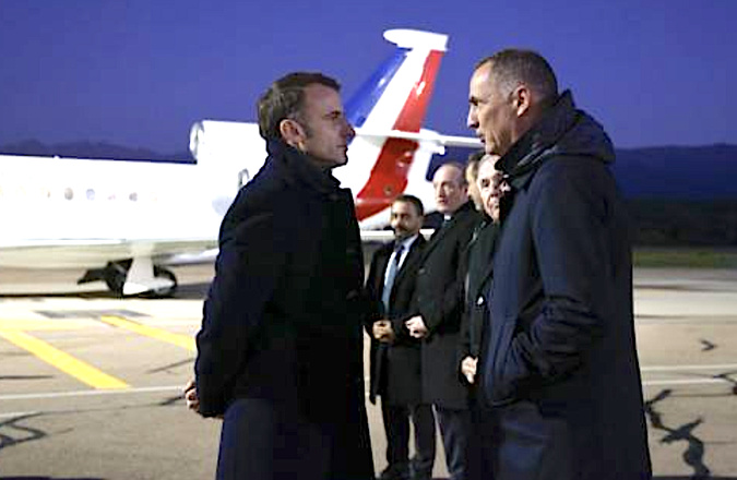 Après sa rencontre avec le pape François, Emmanuel Macron s'est longuement entretenu sur le tarmac de l'aéroport avec Gilles Simeoni.