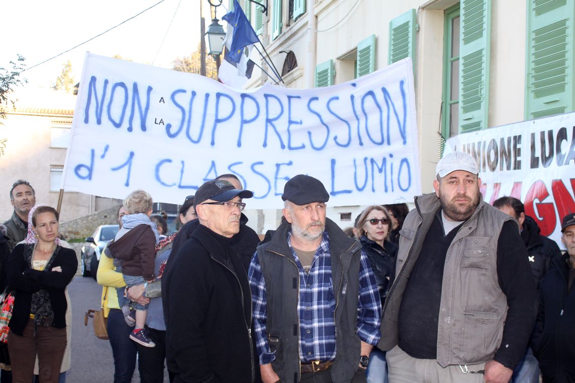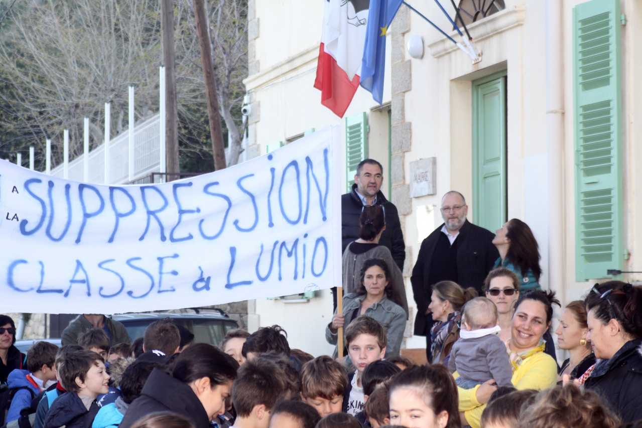 " Merci à vous tous d'avoir répondu en aussi grand nombre à notre appel. Notre présence ici est motivée par la décision de l'inspectrice d'académie de supprimer à la rentrée prochaine une classe et donc un poste d'enseignant à l'école de Lumio.
