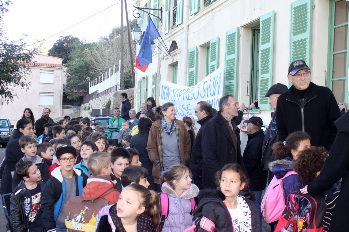Mardi donc, dès 8h30, parents d'élèves et élus étaient rassemblés devant le groupe scolaire François-Savelli pour manifester et montrer leur détermination face à cette décision qu'ils réfutent avec la plus grande fermeté. Sur des banderoles on pouvait lire: " Non à la suppression d'une classe à Lumio."