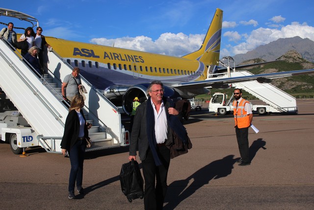 C'est avec 4 mn d'avance sur l'horaire prévu, à 19h06 très précises que le Boeing 737-300 aux couleurs jaunes d'ASL Airlines s'est posé sur la piste de l'Aéroport de Calvi - Balagne.
