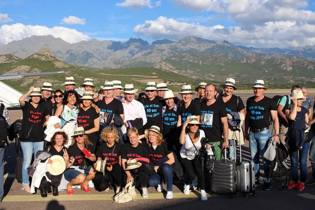 Parmi les passagers, un groupe d'une trentaine de personnes, habituées de la Corse, venues fêter les 50 ans de deux des leurs: Eric et Seb.