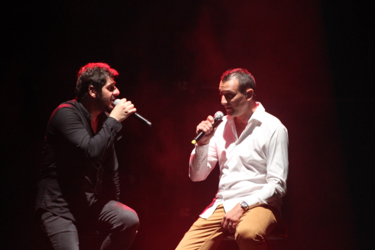 Il est 21h30 et les musiciens entament les premières notes de musique. C’est parti pour plus de deux heures trente de spectacle. Des nouveautés mais aussi beaucoup de succès comme « Que tu reviennes », « Chez moi à Marseille », « Sans bruit »… Une présence, de l’énergie, le chanteur ne tarde pas à emmener son public avec lui. Un public particulier ce soir là. En effet comme il le dit « C’est toujours un peu différent de chanter quand on a ses parents dans la salle ». Alors pour eux tous, Patrick Fiori chante la Corse, son île, seul, mais aussi en duo à l’image de Corsica avec Petru Guelfucci. Un duo également avec celui à qui il avait fait la surprise de venir chanter un morceau lors de son concert, Christophe Mondoloni pour 4 mots sur un piano. Et c’est sur Furtunata qu’il partage un moment de scène avec Jean Charles Papi.