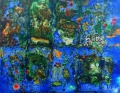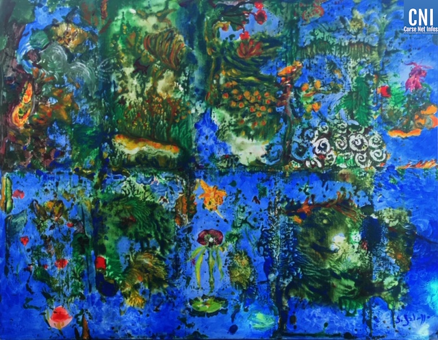 Les toiles sont signées Solange Galazzo. Originaire de Sicile, sa vie est ponctuée de voyages qui sont pour elle sources d’inspiration. « Je me nourris de ces cultures différentes, de lectures et de poésie, de la découverte de paysages différents, pays méditerranéens, Asie, Afrique et aussi le Mexique... J’utilise souvent un langage abstrait qui laisse deviner la figure. Une figure éphémère et allusive laissant place au rêve ... J’aime provoquer l’énigme et le mystère.Leonard de Vinci invitait à regarder les murs décrépis pour inciter l’imaginaire à se révéler » souligne l’artiste.