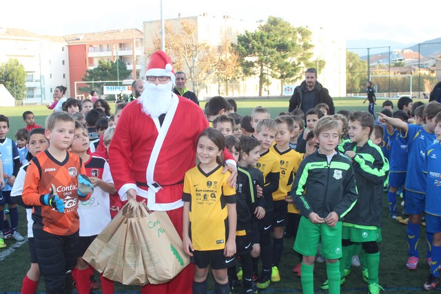 Et puis, au terme des rencontres, en guise de remise de prix, les enfants ont vu arriver le père Noël avec ses petits lutin l'aidant à porter médailles et chocolats pour tous.