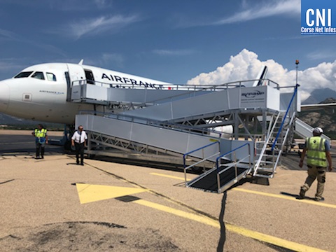 Les premiers essais de mise en place de rampes d'accès aux avions pour Personnes à Mobilité Réduites mais aussi personnes âgés ayant des difficultés à se déplacer ont débuté mardi et se sont poursuivies ce mercredi matin à l'aéroport Calvi-Balagne.