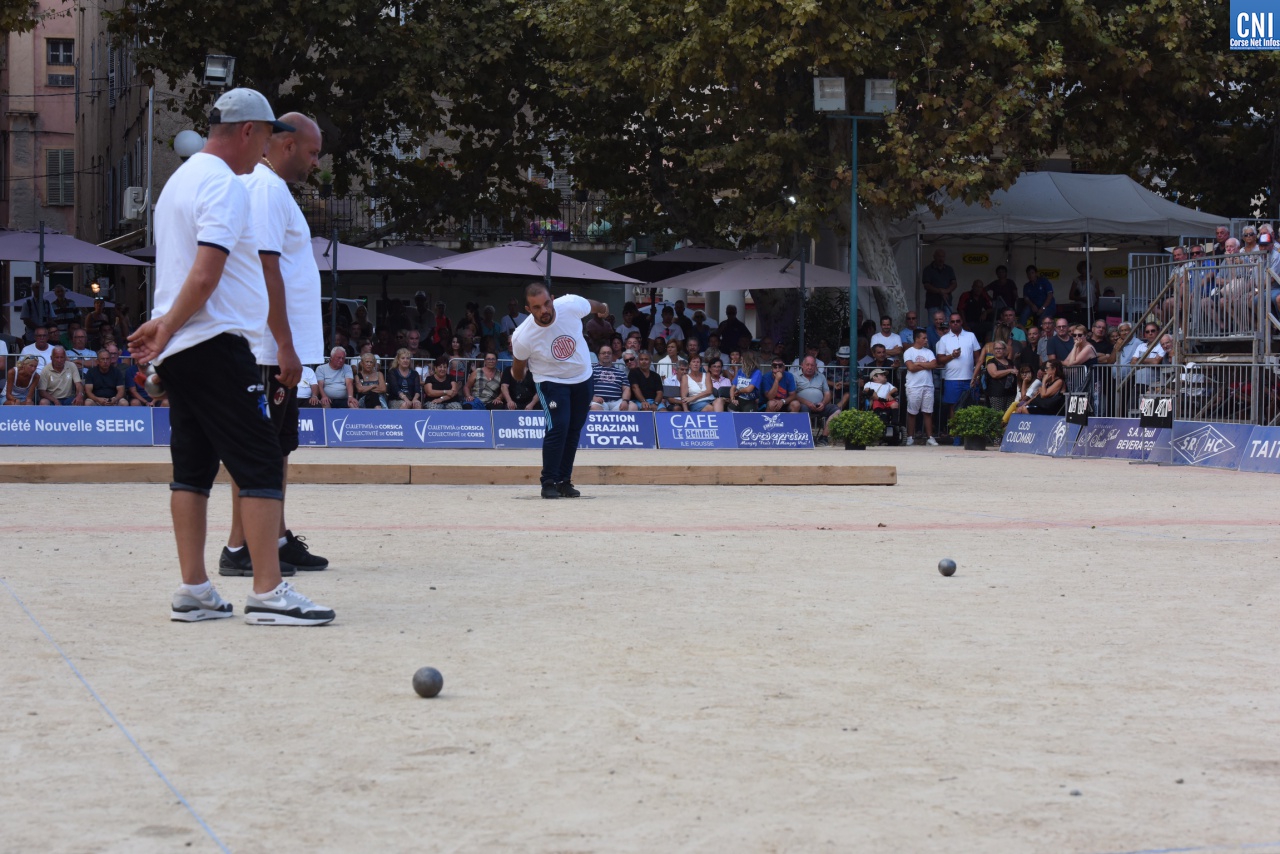 Du côté des hommes, cette dernière manche a été remportée 13 à 5 par la triplette de Molinas, Dubois et Lacroix, toujours sur la place Paoli.