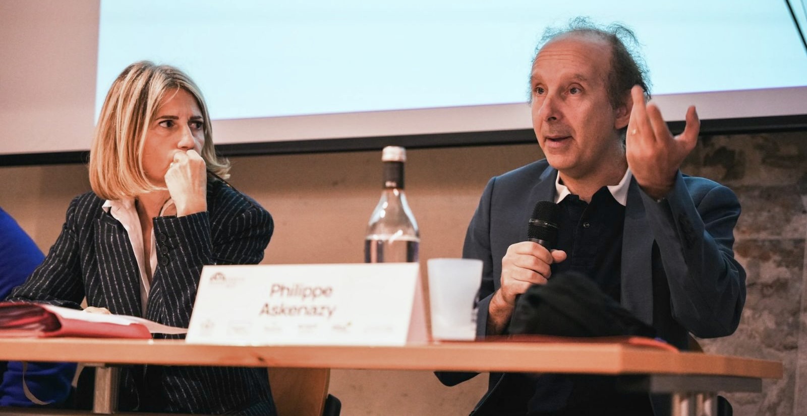 La présidente de l’Assemblée de Corse, Nanette Maupertuis, et l’économiste du travail et de l'innovation, Philippe Askenazy, lors du colloque sur les mutations du travail, organisé dans le cadre de Corsica Pruspettiva 2050, le 26 novembre à l’auditorium du musée de Bastia.
