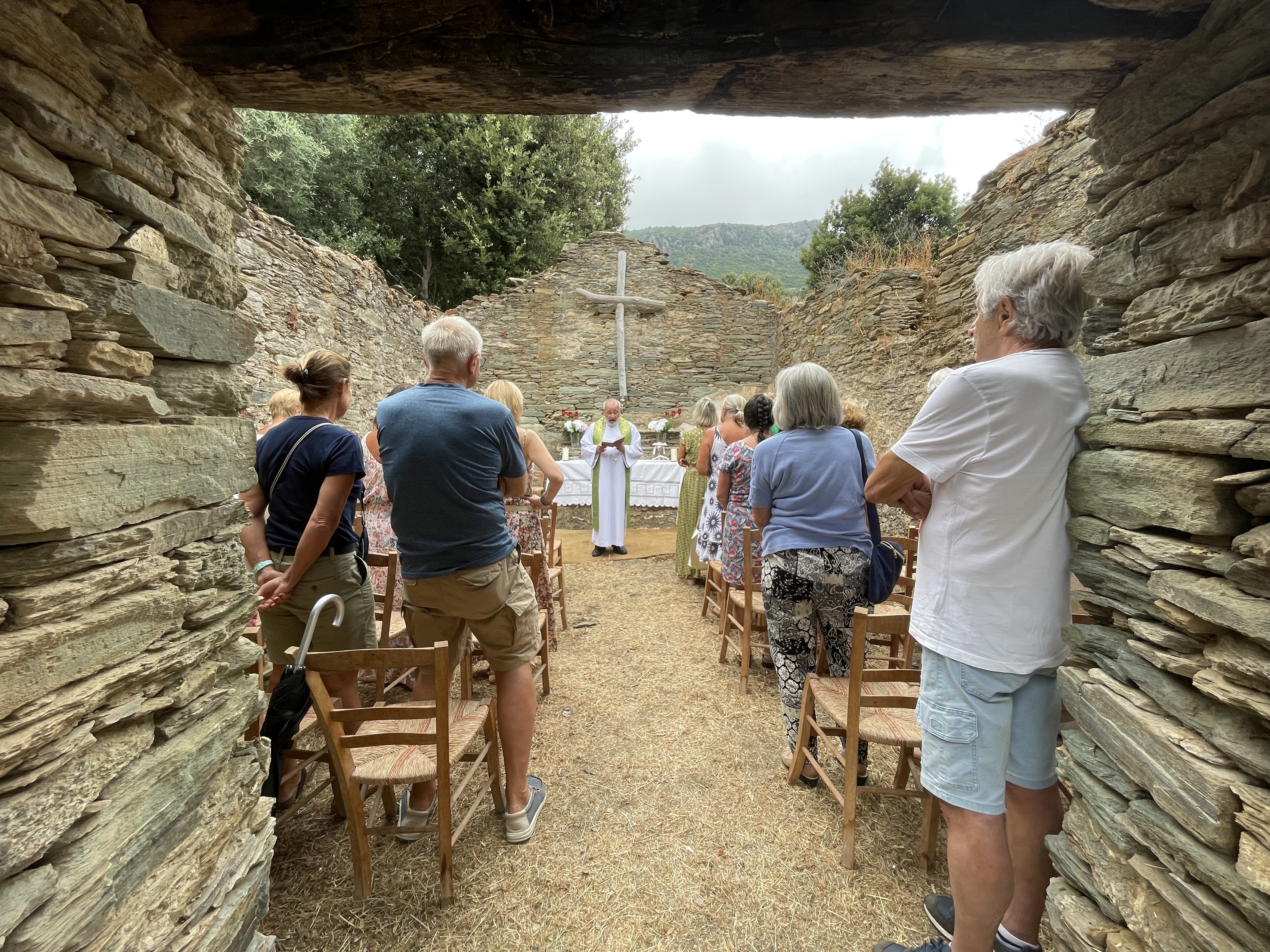 Malgré quelques gouttes de pluie, la messe a bien eu lieu. Elle a été célébrée par le père Michel Magdleine, curé de Lavasina, devant les ruines restaurées de la chapelle Saint-Guillaume, au hameau de Lapedina suttana. Construite au XVIIIe siècle, cette chapelle rurale est l’une des huit que compte la commune de Pietracorbara. Elle fut édifiée alors que la chapelle Saint-Pancrace existait déjà à Lapedina suprana, quelques centaines de mètres plus haut.