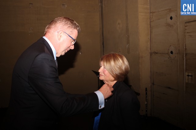 Au cours de la cérémonie de labellisation du Centre de création musicale Voce, jeudi soir, à l'Auditorium de Pigna, en présence de Régine Atchondo, directrice générale de la Création Musicale au ministère de la Culture (voir par ailleurs) et en présence de plus de 150 invités, Josée Martelli, maire de Pigna a reçu des mains du préfet de Haute-Corse, Gérard Gavory, les insignes de Chevalier de l'Ordre national du Mérite.