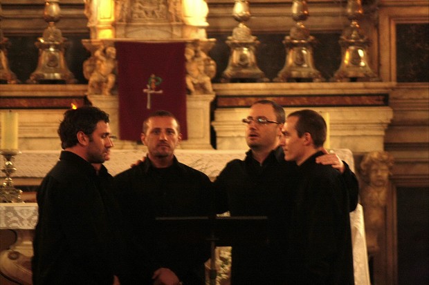 De nombreux artistes avaient répondu à l'appel de l'Eglise de Corse pour offrir une soirée concert de grande qualité au public ajaccien. A l'image du groupe Canti d'Aiacciu, qui a clôturé en beauté cette fête de lancement du Denier de l'Eglise. (Photo Marilyne Santi)