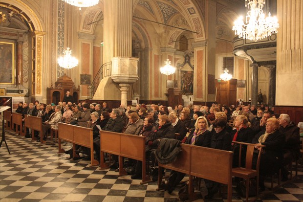 La soirée a débuté à 19h30 avec la prise de parole du Père Micaletti, curé de la Cathédrale. Après les remerciements d’usage à destination des nombreux artistes présents et des fidèles, l’importance de la campagne du denier a été abordée. « Vous nous aidez à lancer la campagne du Denier par votre présence et votre bonté. Vous nous aidez aussi à faire comprendre à tous la nécessité de faire vivre votre Eglise, et ce soir nous voulons sensibiliser l’opinion de la population en Corse à cette importance » a-t-il expliqué. Laissant ensuite la place à Mgr de Germay qui, après avoir lancé un appel aux fidèles, s’est déclaré plein d’espérance pour l’Eglise en Corse. « Nous souhaitons sensibiliser les Chrétiens, c’est pour cela que nous avons voulu faire parler de cette campagne du Denier. Beaucoup de corses sont attachés à l’Eglise mais certains ne savent pas que l’Eglise a besoin de dons pour vivre. Nous avons besoin de vous ! » a-t-il affirmé, réaffirmant ainsi toute l’importance du Denier. « On entend parfois des commentaires un peu pessimistes mais ce n’est pas une fatalité ! Je suis plein d’espérance pour l’Eglise en Corse et pour cela nous avons besoin de vous, soyons conscients de cet enjeu » a-t-il conclu en remerciant l’assistance.