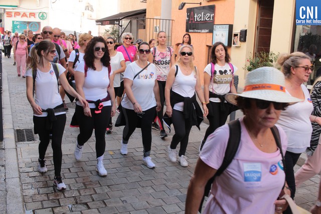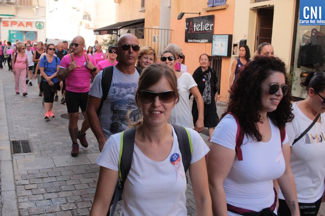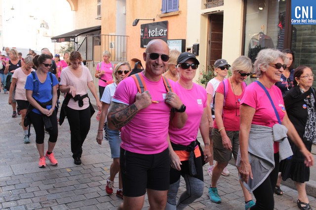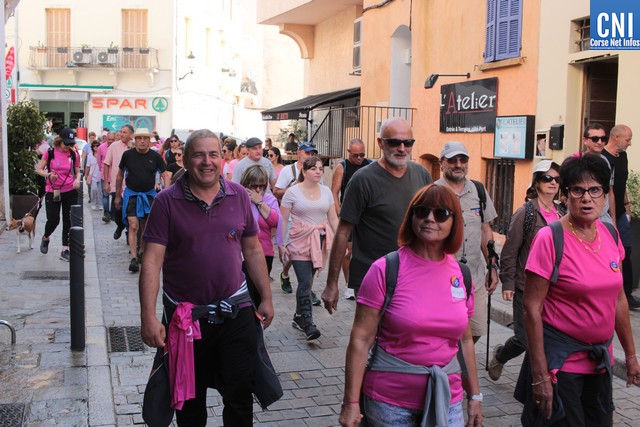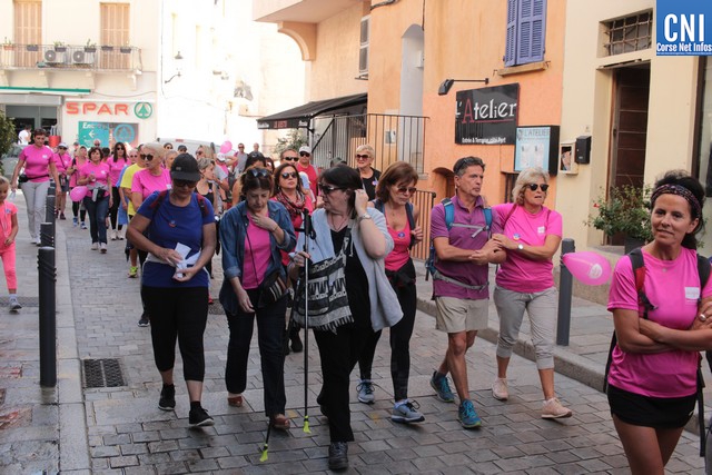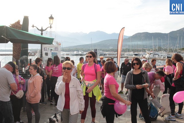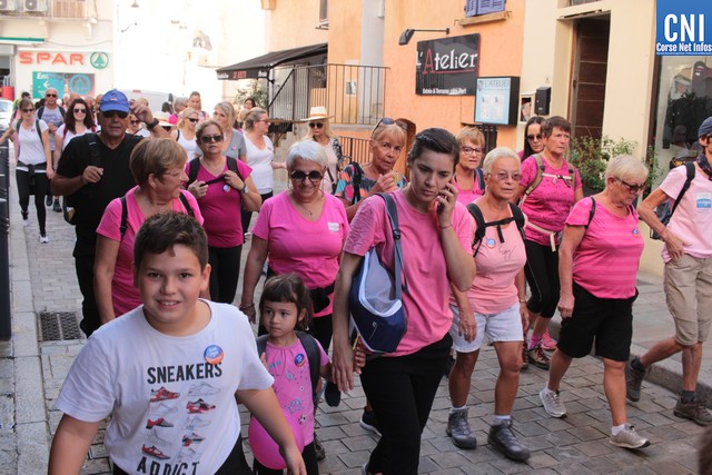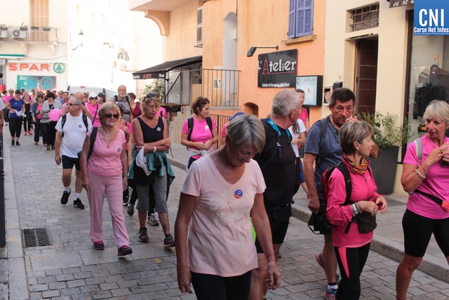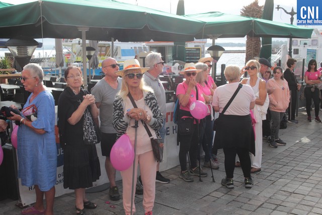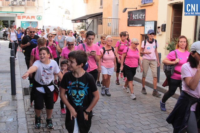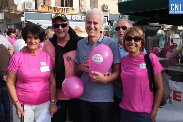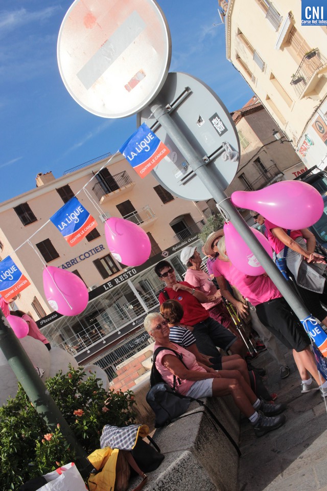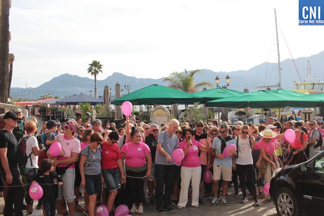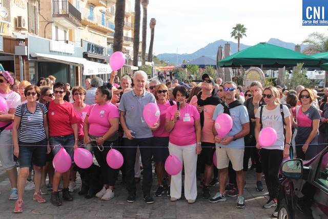 Un ballon rose à ,la main, symbole de cette marche, Jean-Louis Delpoux avec à ses côtés la présidente Jeannine Maraninchi, Marie Luciani, Sylvie Bereni, Didier Bicchieray, Jean-Michel Nobili, adjoints au maire de Calvi, Hélène Astolfi, Laetitia Paquet-Plaiter, François-Xavier Acquaviva, conseillers municipaux, représentants d'associations et autres coupait le ruban et libérait les marcheurs qui sous la protection de la Police Municipale prenaient la direction de ND La Serra.
