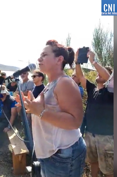 Perchée sur une palette, Brigitte Filippi prenait la parole pour remercier toutes celles et tous ceux qui ne veulent pas de ce projet et qui ont répondu à l'appel du Collectif 'Tavignanu Vivu" pour témoigner de leur soutien et de leur solidarité