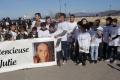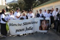 Une seule banderole avec le portrait de la victime et ces simples mots "Marche silencieuse pour Julie".