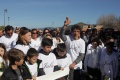 Derrière cette banderole, le fils ainé de Julie, Luccas, 10 ans, très courageux. Un vrai petit bonhomme, entouré de ses camarades et de la famille.