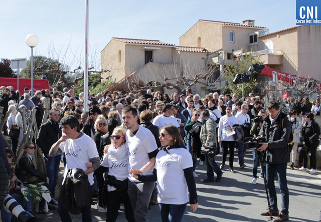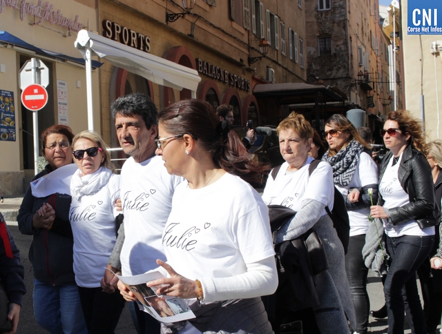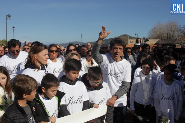 Toujours très digne, malgré la douleur, sur la place Paoli, c'est tout d'abord Jordan, le frère de julie qui, le visage dans ses mains, trouvait la force de prendre la parole: " Juste quelques mots pour vous dire un grand merci de votre présence, de votre soutien. Merci pour elle, merci pour les petits. Merci pour ce combat. Je compte sur tout le monde pour sa mémoire, pour sa force. Que la vérité soit faite, que le coupable paie ce qu'il mérite. Que justice soit faite et que ça serve au moins à quelque chose, au moins à quelqu'un. Merci à tout le monde, merci. Juste un dernier mot: on sait que vous êtes avec nous. Une livre de condoléances est à votre disposition au pied de l'église.".