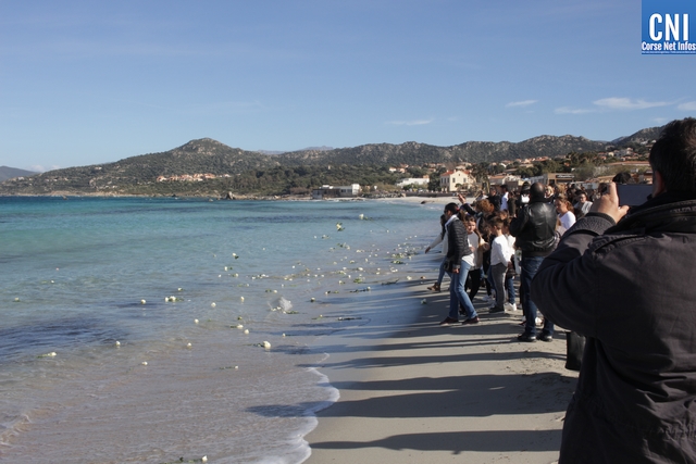 Ultime geste avant la dislocation, celui de la famille et des amis qui se sont rendus ensemble à la plage pour lancer en mer des roses blanches, aussitôt emportées vers le large.