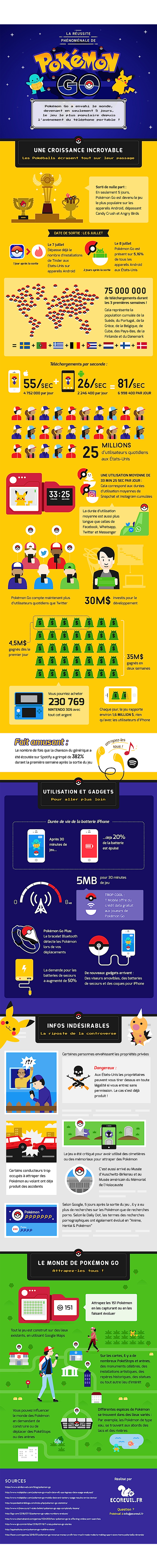 Les statistiques folles derrière le plus récent jeu mobile. La puissante combinaison entre nostalgie et technologies innovantes de jeux modernes a conduit Pokemon Go à devenir le jeu mobile ayant le plus de succès. Avec 25 millions d'utilisateurs quotidiens aux Etats-Unis seulement et une utilisation moyenne de plus de 30 minutes par jour, Pokemon Go est déjà un énorme succès, qui n'épargne pas la Corse, en dépit de sa sortie récente. Consultez notre infographie pour voir les chiffres fous du succès de Pokemon Go.