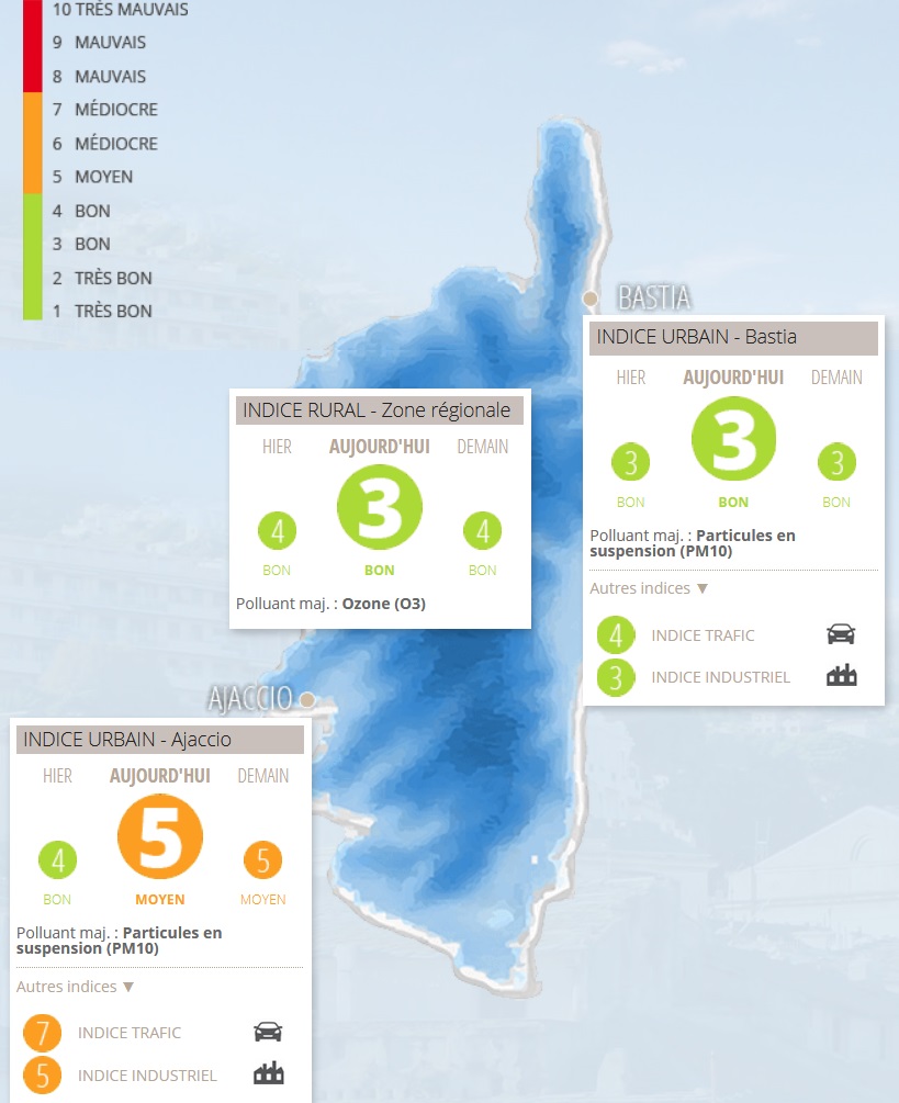 Les seuils réglementaires n’ont certes pas été dépassés, mais la qualité de l’air dans la ville d'Ajaccio est médiocre notamment prés des axes routiers. C'est la société Qualitair corse que ce vendredi a indiqué que depuis le début de la semaine les concentrations en particules fines dans le centre-ville étaient élevées en raison d’une forte stabilité météorologique qui empêche toute dispersion des polluants émis localement. Ainsi sur une échelle de 10, l'indice de qualité de l'air a été placé à 5.