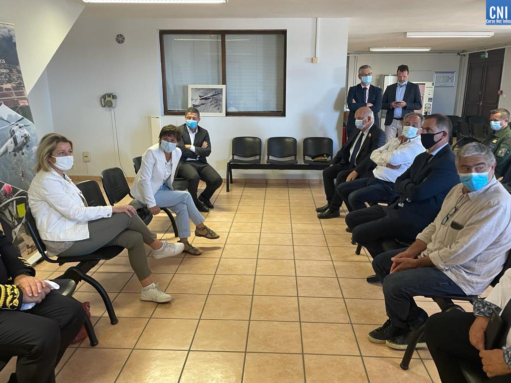 Dès l’annonce de la présence d’une nappe d’hydrocarbures au large d’Aleria et de Sulinzara, le président du Conseil exécutif de la Collectivité de Corse, Gilles Simeoni, a rejoint immédiatement, samedi matin, le Centre opérationnel départemental où une cellule de crise a été mise en place par la Préfecture à Bastia. Il a, tout de suite, appelé « à la mobilisation générale pour éviter tout impact de ce dégazage sauvage et illégal sur les côtes ». Il s’est, ensuite rendu à la base aérienne de Sulinzara pour rencontrer Barbara Pompili, ministre de la Transition écologique, et Annick Girardin, ministre de la Mer, qui venaient d’arriver, mais aussi les maires des communes du Fium’Orbu menacées. « Je tiens, d’abord, à saluer la réactivité des deux ministres et les remercier d’être venues. C’est quand même une marque d’intérêt et d’engagement. Je tiens, aussi, d’une façon générale à saluer le travail de tous les services qui sont engagés sur terre et sur mer », commente-t-il. « Même si les dernières nouvelles sont plutôt rassurantes, l’épisode de pollution n’est pas encore derrière nous, notamment cette partie de la nappe qui dérive vers le Sud et l’Extrême-Sud. Il faut rester très vigilants et très mobilisés et surtout tout faire pour qu’il n’y ait pas d’impact sur le côte et les activités économiques », martèle-t-il.