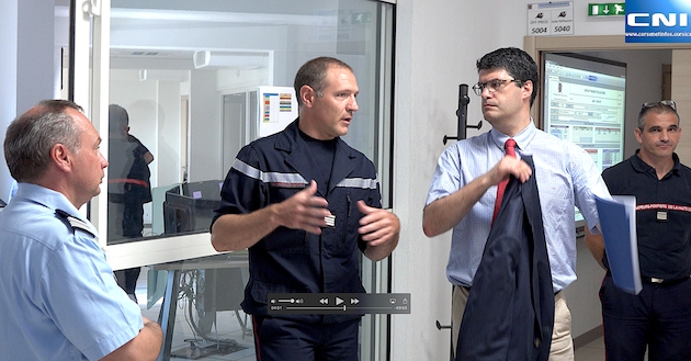 Au Sdis, enfin, Julien Marion a visité l'Etat-major, le Codis, puis a écouté, avec attention, la présentation de la campagne feux de forêts 2017 avec notamment un focus sur le dispositif Horus Corsica, validé par l'Etat, qu'il a financé en partie avec la CTC/