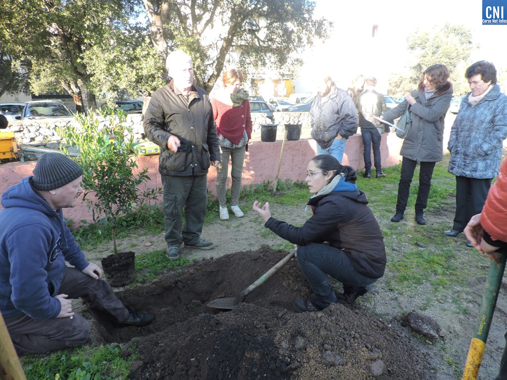 Le projet a démarré ce Mardi 18 Décembre dans les quartiers Pifano et Stagnu avec la plantation de 8 orangers sous la direction et les conseils professionnels d’Adeline Bourguignon, directrice des « Pépinières de Saint Cyprien » et d’André Serra au titre du « Greta » . Ces orangers ,nous a dit Adeline Bourguignon, ont été plantés avec leurs fleurs enlevées ce qui permettra, on le souhaite, de voir les premières oranges l’année prochaine à même époque.