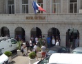 La répartition entre les composantes de cette commission n’étant pas jugée équitable, les discussions n’ont pas permis d’aboutir au règlement prévu .Dans l’intervalle, et pour faire bloc, un nombre important de commerçants ,et sympathisants s’étaient donné rendez-vous devant la mairie à 14 heures.