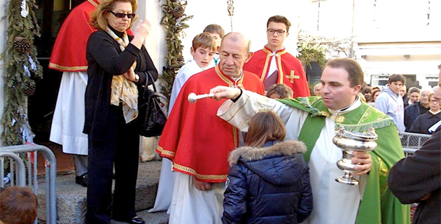 A l'issue, sur le parvis de l'église, l'abbé Constant entouré des confrères de Sainte Croix, a procédé à la bénédiction des troupeaux avant que tous les fidèles entonnent un vibrant Dio Vi Salve Regina.