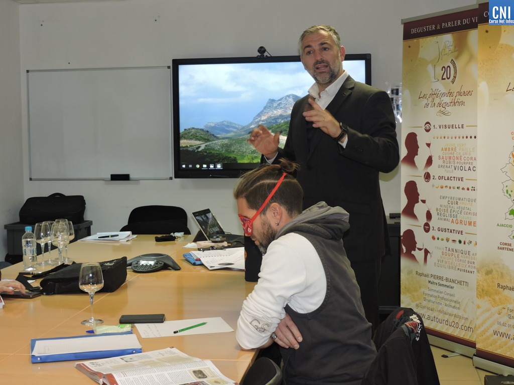 C’est donc à une dizaine de stagiaires du CFA de Porto-Vecchio que ce vendredi 1 mars Raphael Pierre Bianchetti, Maître Sommelier de l’Union de la Sommellerie Française, président des sommeliers de Corse, et créateur du site « Autourdu20 », a prodigué tous les conseils de l’art de la reconnaissance du vin.