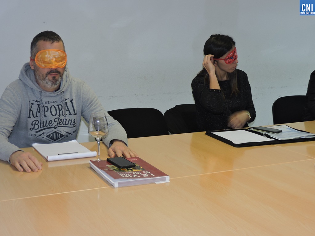 Des dégustations à l’aveugle sont aussi pratiquées, les yeux bandés avec une bouteille d’un vin anonyme. Les stagiaires sont briffés pendant cet exercice par les recommandations de Raphael Pierre Bianchetti afin de les guider à découvrir ce vin. Il fait appel pour cela à la concentration de ses élèves, et diminue le son de sa voix.