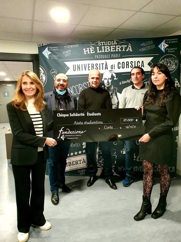Un chèque de 10 000 euros a été offert à l'association aiutu studientinu pour l'aider dans ses actions contre la précarité étudiante. Crédits Photo : Fundazione di l'università di Corsica.