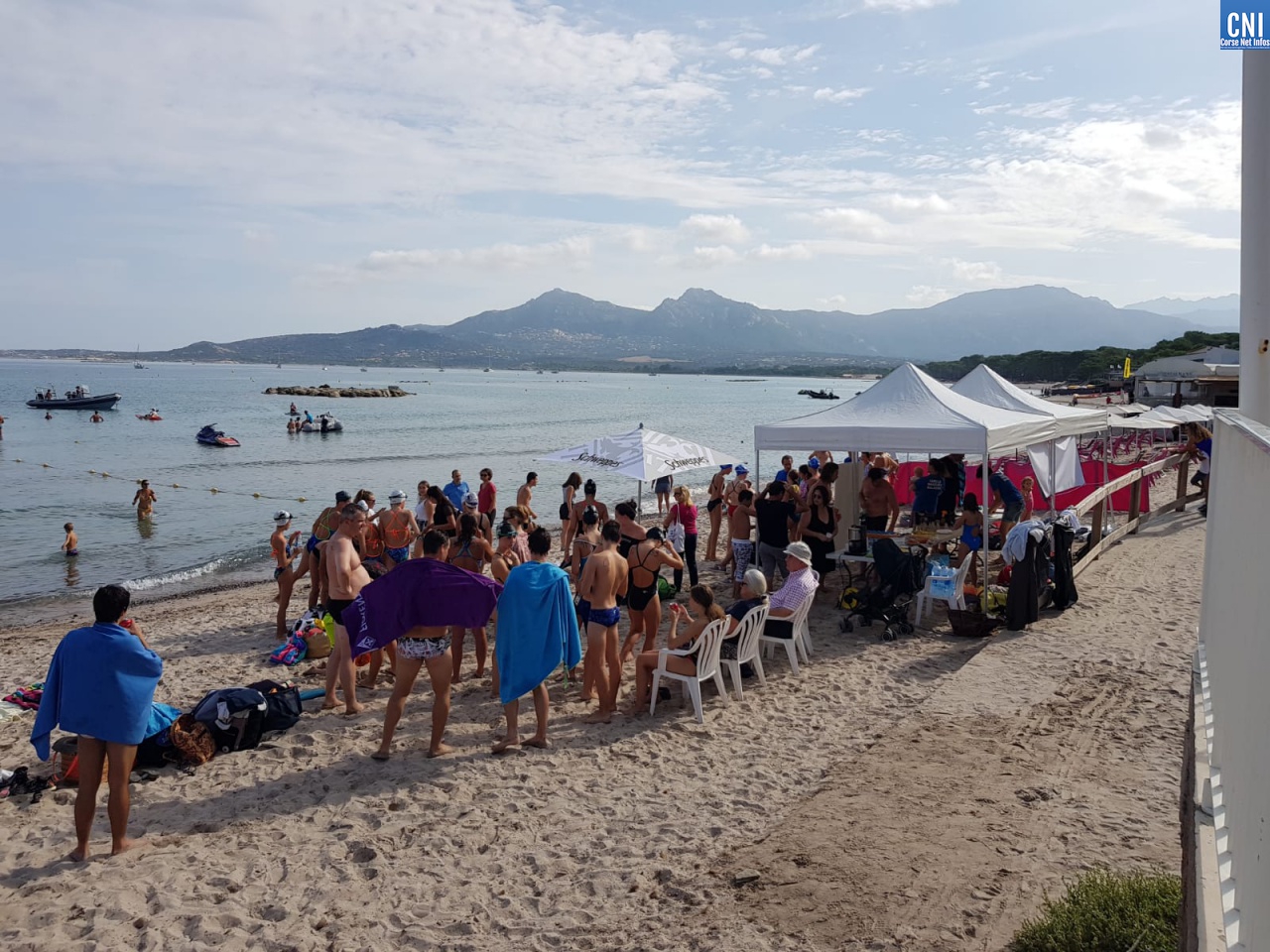 Le rendez-vous était donné à 9 heures ce dimanche matin, devant le poste de secours de la plage de Calvi. Plus d'une cinquantaine de nageurs, venus de toute la Corse et quelques vacanciers ont participé au " défi de la baie de Calvi".