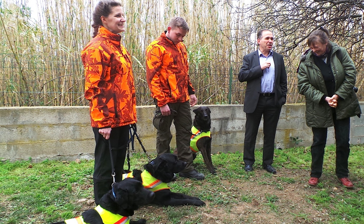 Sur place, Philippe Tejedor, directeur départemental de la Cohésion sociale et de la protection des populations de la Haute-Corse, a fait le point de l'opération anti-capricorne asiatique qui se limite au territoire de la commune de Furiani et les raisons qui ont présidé à la venue des trois chiens. A ses côtés Maurice Pasqualini, conseiller municipal de Furiani et Rémi Rossignol de la Fredon (Fédération régionale de défense contre les organismes nuisibles de Corse) notamment.