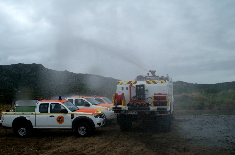 Peu après, face à l’avancée d’un front particulièrement virulent menaçant les premières habitations du quartier, les engins se déployaient en formation d’autoprotection grâce au puissant canon à eau mis en œuvre depuis le camion de la RC Lumio.