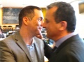 L'accolade donnée à Jean Baggioni, qui avait pris place parmi le public, avant de rejoindre l'estrade présidentielle à la demande de Antoine Mearini, président de séance.