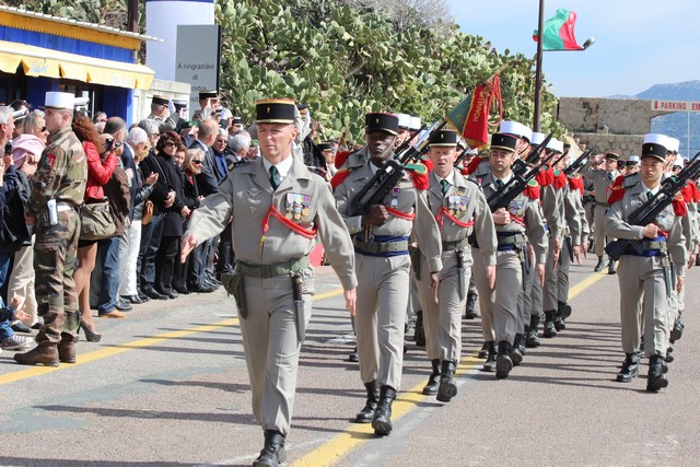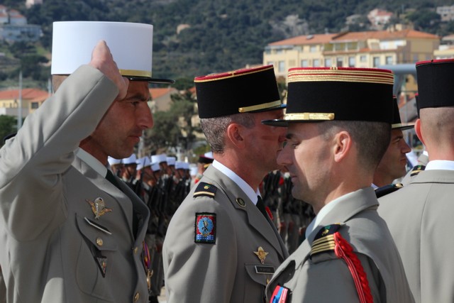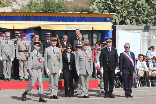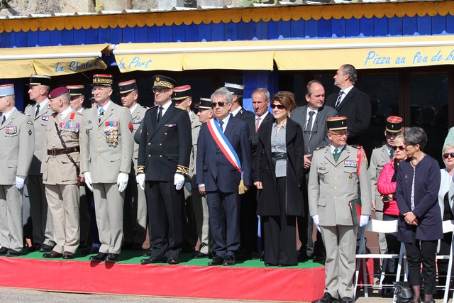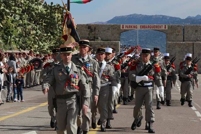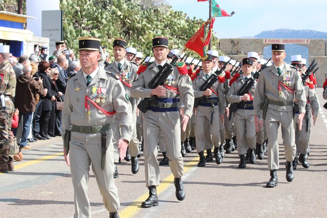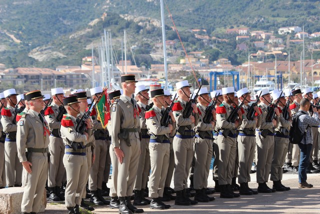 Le Régiment rassemblé, le colonel Jean de Monicault, chef de corps du 2e REP passait les troupes en revue, aux sons de la musique militaire des parachutistes, venue tout spécialement de Toulouse, avant d'accueillir les autorités civiles et militaires, au rang desquelles le maire de Calvi, Ange Santini, le général Jean Maurin, commandant la Légion Etrangére qui présidait la cérémonie, le général Eric Bellot des Minières, commandant la 11e brigade parachutiste, Jérôme Seguy, sous-préfet de Calvi et Elisabeth Santelli, conseillère départementale Calvi-Balagne.