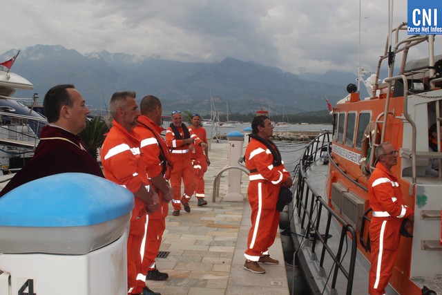 Auparavant, l'Abbé Valery et quelques confrères se sont rendus au quai d'honneur "Marc Linski" où était amarrée la nouvelle vedette de la SNSM '" Marius OIlvari TT". A bord et sur le quai, l'équipage au grand complet et en tenue autour de sa présidente, Sabine Guiraud, assistait dans le recueillement à la prière à la bénédiction.