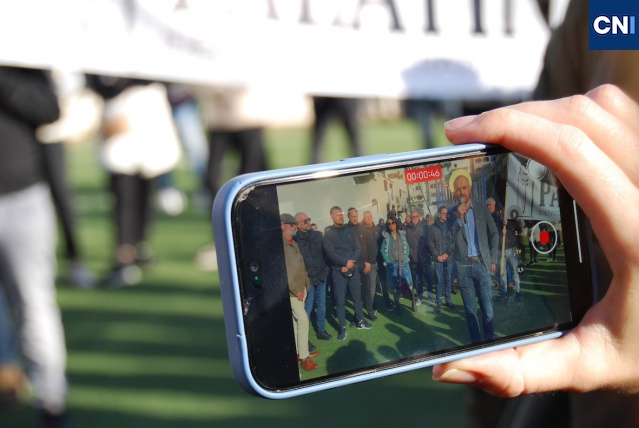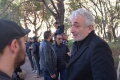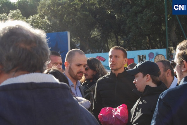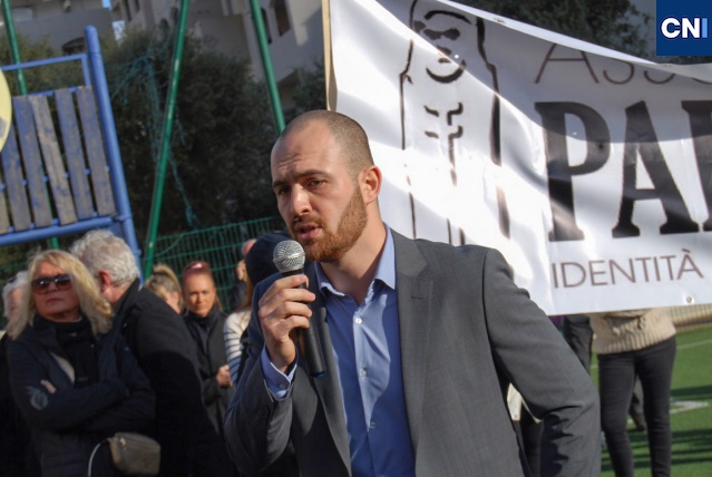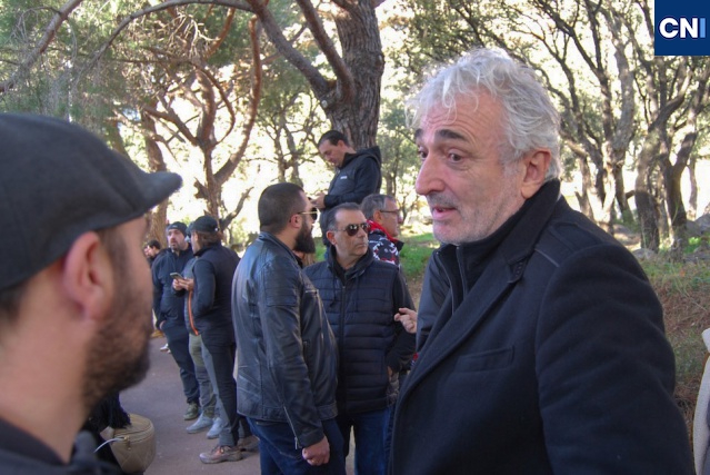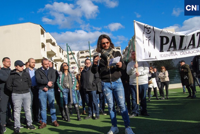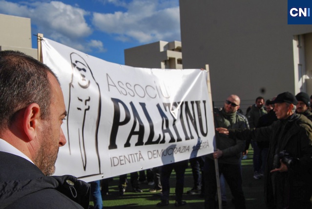 Au centre du jeu, banderole Palatinu qui flotte derrière lui, Nicolas Battini entre dans le vif du sujet : « La raison de notre présence, vous la connaissez. Une bonne partie d'entre vous est ici suite à notre appel. Nous sommes bien là pour défendre Guillaume, Raphaël et surtout l'accompagner de toutes nos pensées. Nous, membres d'une même communauté, des liens nous unissent. » De nouveaux applaudissements s'élèvent de la foule massée autour de lui. Il poursuit : « Au-delà de cette famille que nous soutenons, sans stigmatiser qui que ce soit, encore moins tout un quartier, nous voulons être les porte-parole et les défenseurs de tous les Corses : ouvriers, salariés, ceux qui vivent dans la précarité, et qui, en plus de cela devraient aujourd'hui supporter quelques individus qui les menacent et leur empoisonnent la vie. Nous le refusons » martèle le leader de Palatinu. « Nous voulons dénoncer ces comportements et pointer un certain nombre de responsabilités politiques. Le discours public de la majorité territoriale a décidé d’évacuer les questions et les réalités politiques qui nous touchent tous ici. Les questions migratoires et sécuritaires doivent trouver des solutions pour protéger notre peuple » ajoute Nicolas Battini avant de conclure : « Je suis opposé à toute forme de violence. À Palatinu, nous ne sommes pas de cette race d’hommes qui veulent faire la révolution avec les enfants des autres. Nous disons à toutes ces personnes qui sont là, qu’elles peuvent vivre et dormir en paix. Désormais, avec ce que nous faisons et ce qui viendra, ils ont des porte-parole pour les défendre et les représenter. » Si Palatinu se définit comme une association culturelle, son leader a, depuis un moment, glissé vers la politique comme le confirme cette prise de parole.