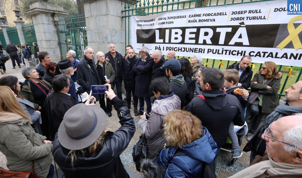 Emprisonnés depuis quinze mois pour quatre d'entre eux et douze mois pour les cinq autres, les « presos politicos’ catalan avaient revendiqué le droit du peuple catalan de choisir son destin dans la démocratie, par le vote, en tant que majorité élue à la Generalitat de Catalunya. Certains risquent jusqu’à 25 années de prison. Un procès qui est dénoncé comme politique par le comité de solidarité corse avec la Catalogne.